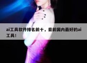 ai工具软件排名前十,ai工具软件排名前十作用!